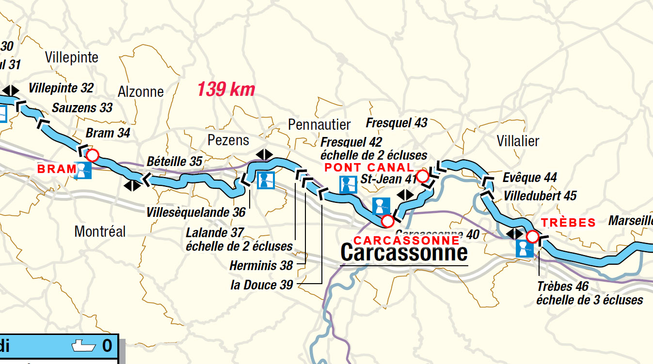 | écluse n°34 de Bram | 08h43 | 09h03 | 2 km |